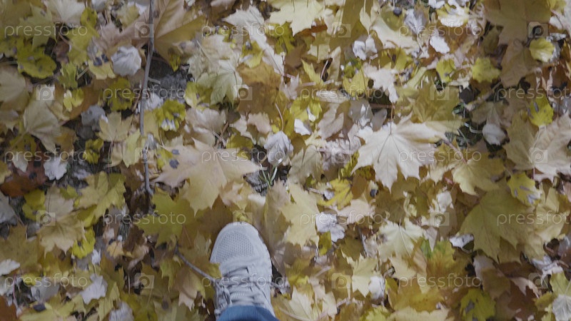 Мужчина в обуви гуляет по парку, осенняя концепция прогулки по городу на открытом воздухе