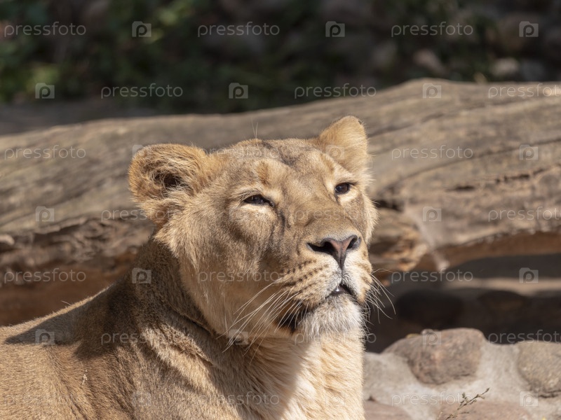 Портрет львицы, греющейся под теплым солнцем после ужина