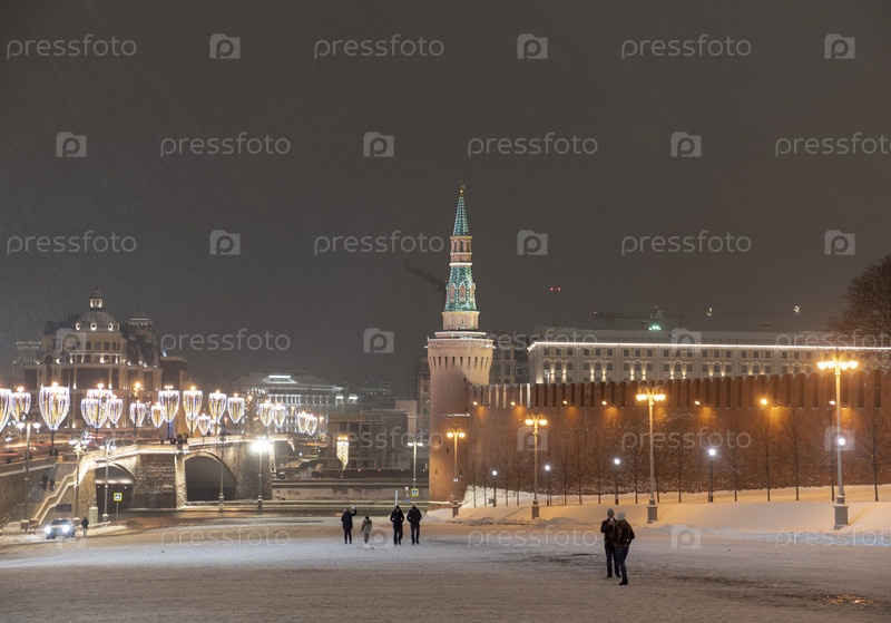 Спасская башня Московского Кремля на Красной площади зимой Москва Россия
