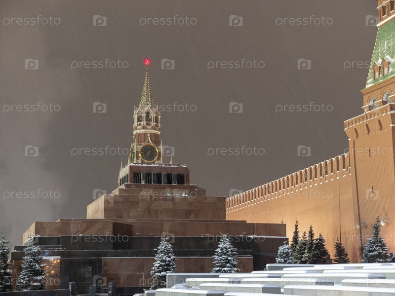 Спасская башня Московского Кремля на Красной площади зимой Москва Россия