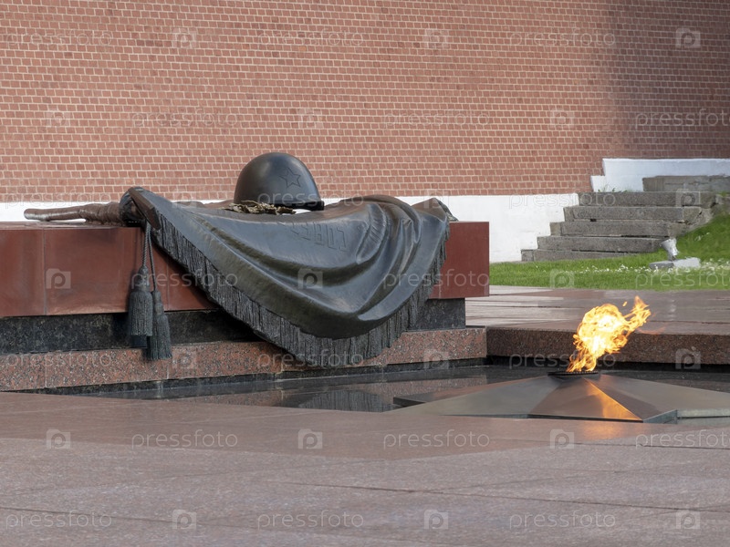 МОСКВА РОССИЯ - 20 АПРЕЛЯ: Военные стоят в сторожевой будке на страже в честь могилы Неизвестного солдата и Вечного огня 20 апреля 2019 года в Москве