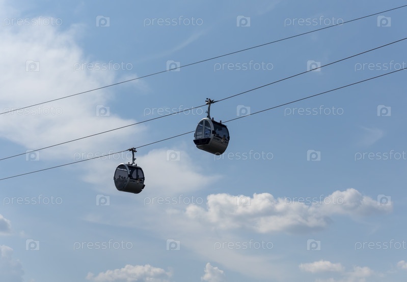 Москва, Россия - 25 июля 2019 г.: Московская канатная дорога в Лужниках