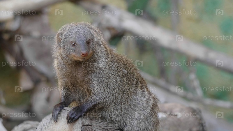 Полосатый мангуст (mungos mungo) отдыхает на солнце