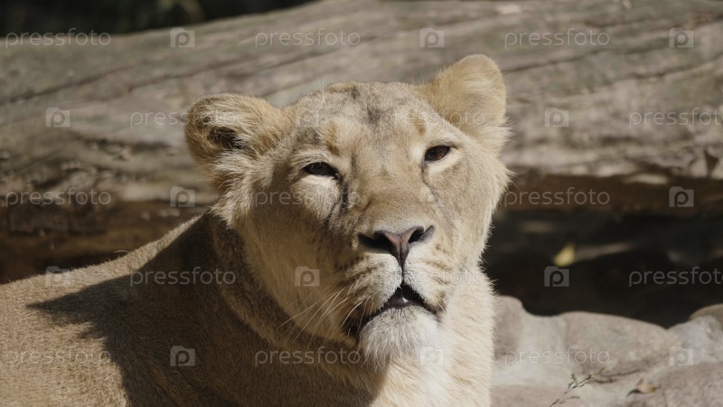 Портрет львицы, греющейся под теплым солнцем после ужина