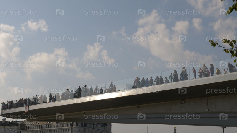 МОСКВА - 25 июня: Фрагмент плавучего моста в парке Зарядье в Москве на фоне неба 25 июня 2018 года в Москве, Россия