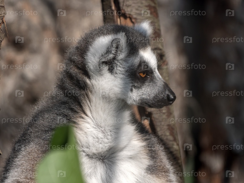 Кошачий лемур Lemur catta сидит под деревом и смотрит в сторону