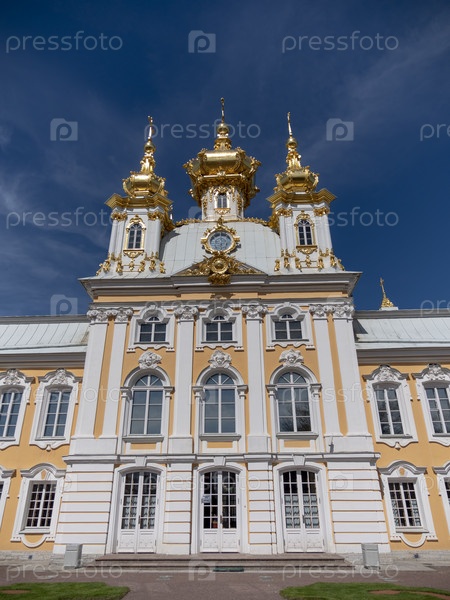СТ. ПЕТЕРБУРГ, РОССИЯ, 12 мая 2018 года: Промежуток времени Петергоф или Петергоф, известный как Петродворец с 1944 по 1997 год, и фонтан Нептуна 12 мая 2018 года в Санкт-Петербурге, Россия