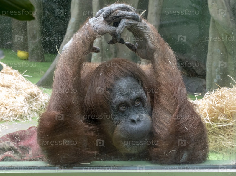Низинный орангутан в эпической позе решения своих проблем