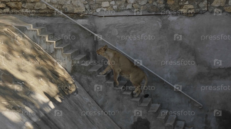 Львица поднимается по лестнице в поисках добычи