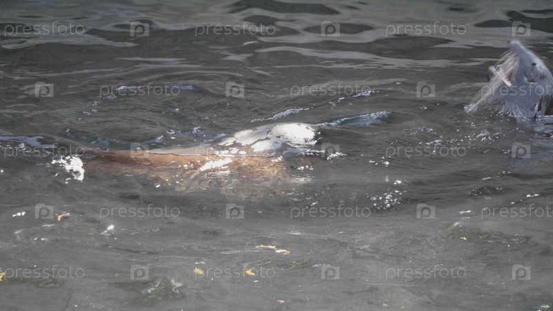 Очень милый пятнистый тюлень выскакивает в волнах