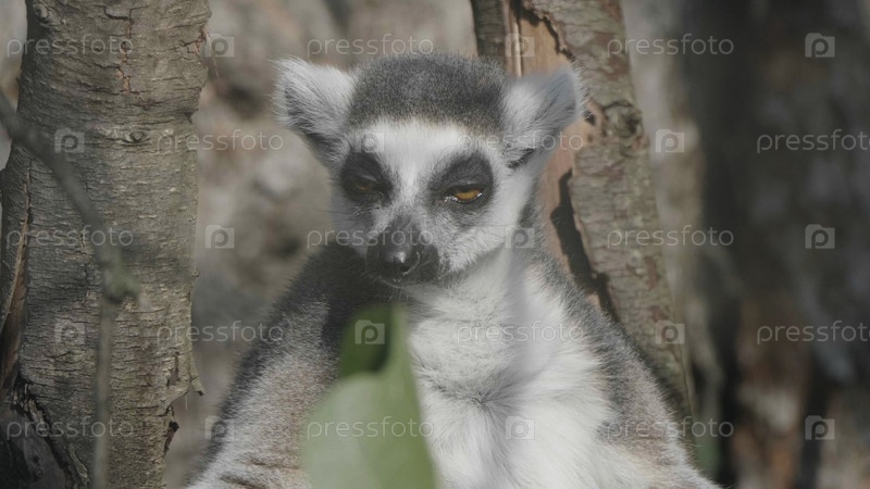 Кошачий лемур Lemur catta сидит под деревом и смотрит в сторону
