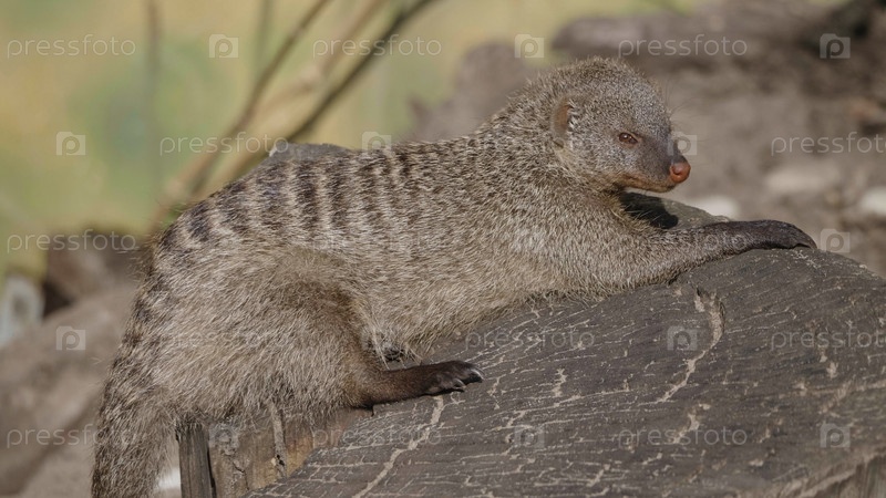 Полосатый мангуст (mungos mungo) отдыхает на солнце