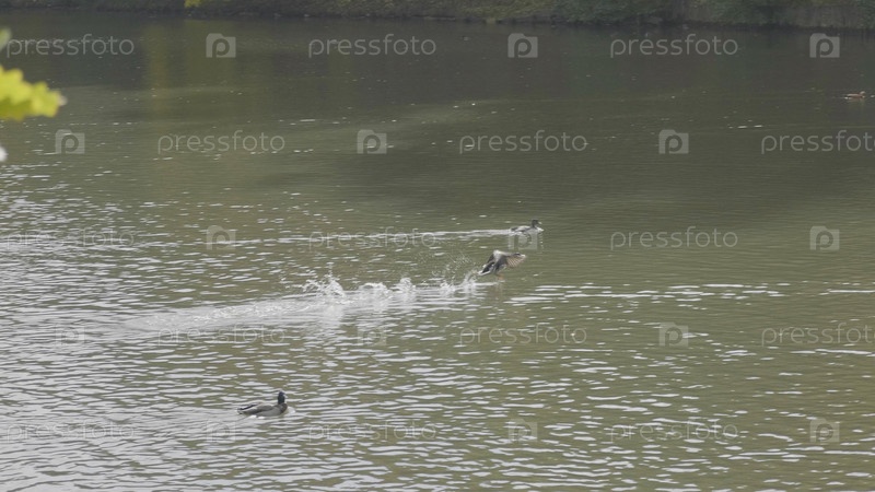 Гусь на прогулке плавает в воде пруда