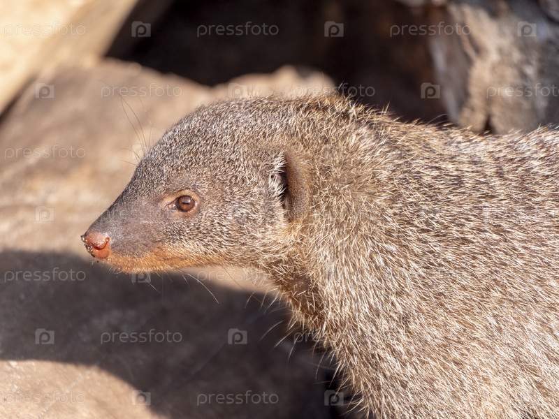 Полосатый мангуст (mungos mungo) отдыхает на солнце