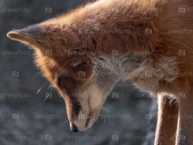 Золотой шакал в природе выслеживает добычу, портрет