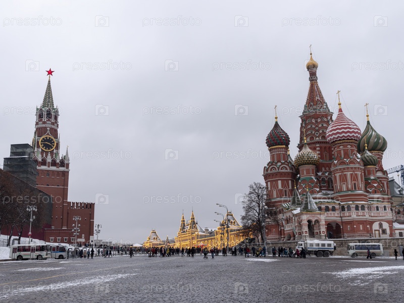 Спасская башня Московского Кремля на Красной площади зимой Москва Россия
