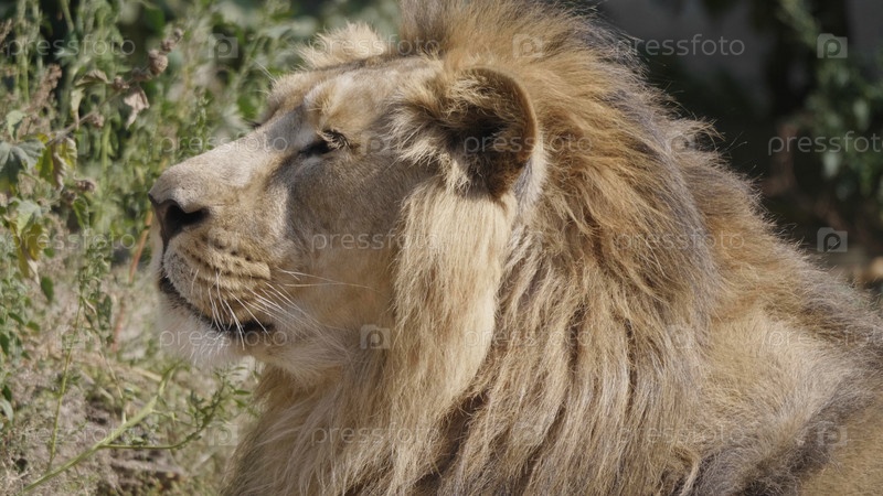 Портрет льва, греющегося под теплым солнцем после ужина