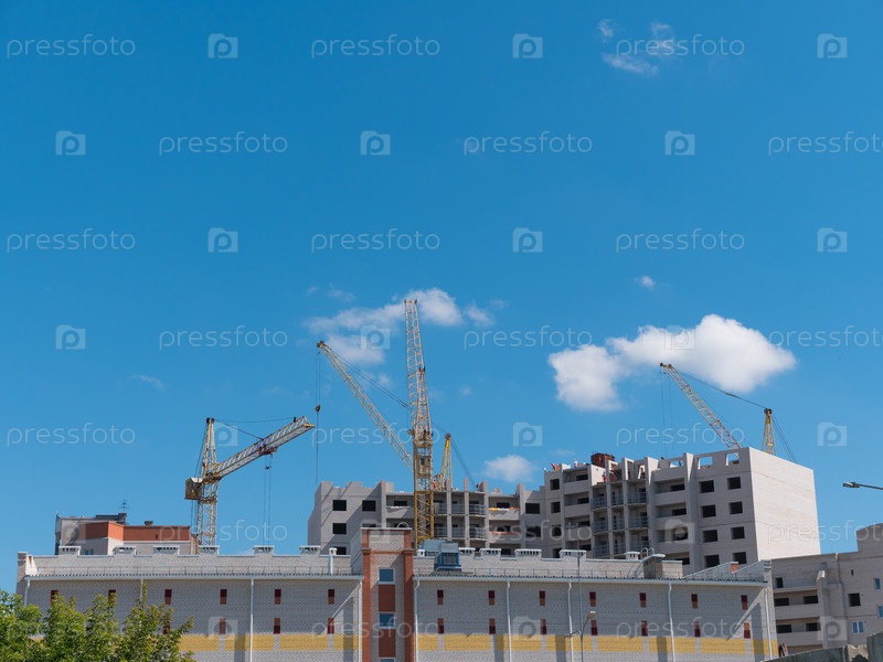 Строительная площадка с множеством кранов на фоне неба