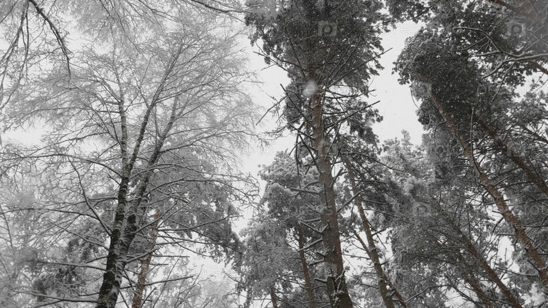 Зимний лес во время снегопада, замедленная съемка