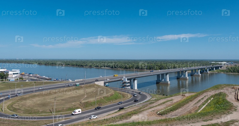 Мост замедленного действия с автомобилями на въезде в Барнаул, Россия