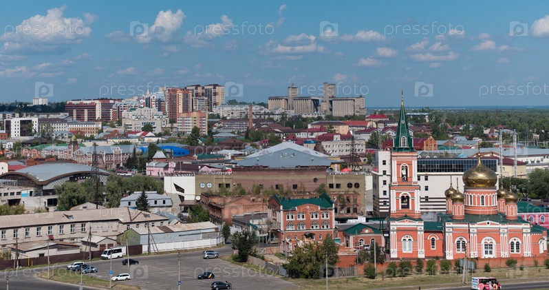 Таймлапс города Барнаула, вид на город и церковь, Алтай, Россия