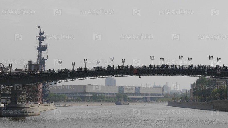 МОСКВА, РОССИЯ, 09 мая 2019 г.: Патриарший пешеходный мост был построен в 2004 году архитектором Михаилом Посохиным