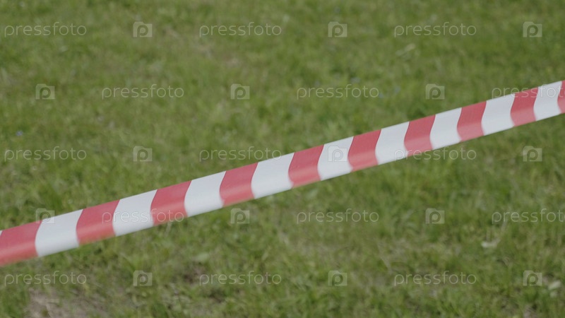 Красно-белая временная лента по периметру на фоне зеленой травы