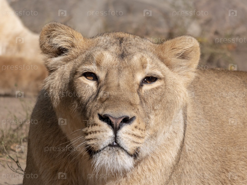 Портрет львицы, греющейся под теплым солнцем после ужина
