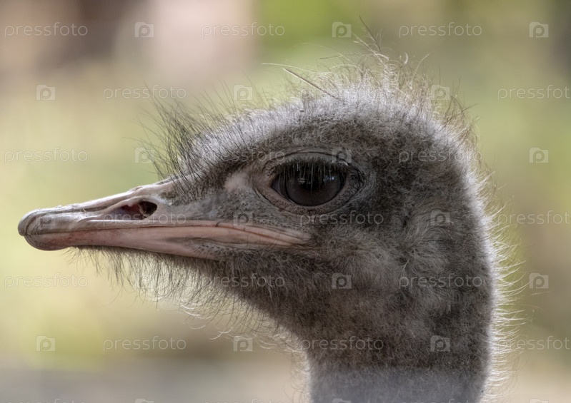 Страус крупным планом в оглядке осторожно оглядывается