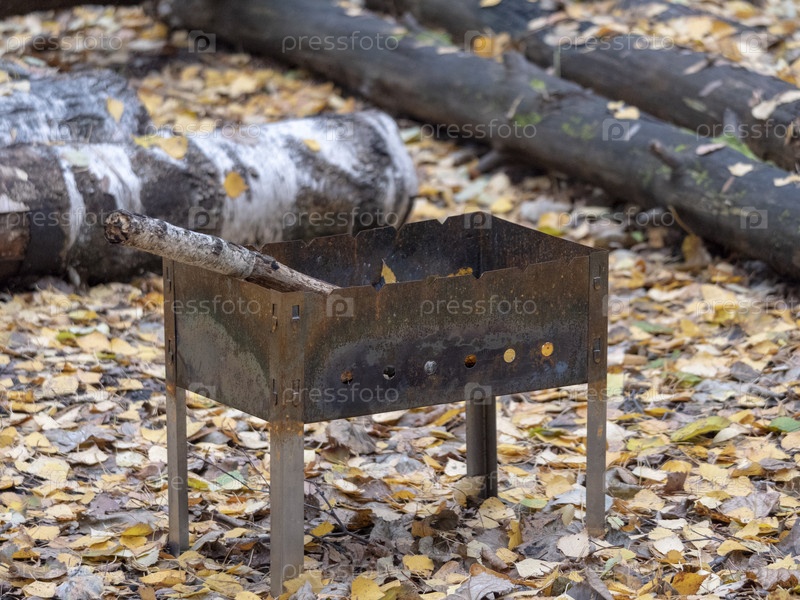 Черный уголь и пламя в складной портативной жаровне готовятся к приготовлению еды на гриле