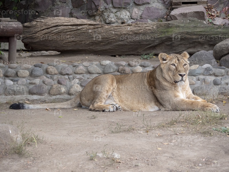 Портрет львицы, греющейся под теплым солнцем после ужина