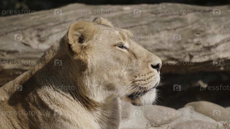 Портрет львицы, греющейся под теплым солнцем после ужина