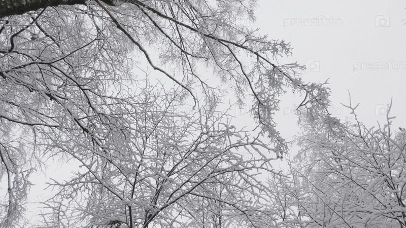 Зимний лес во время снегопада, замедленная съемка
