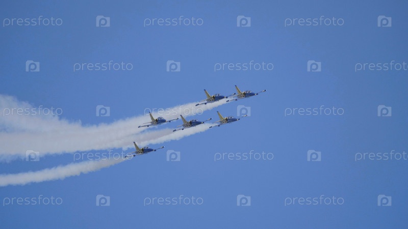 Москва, Россия, аэродром Жуковский 31 августа 2019 года: Aero L-39C Albatros пилотской группы Baltic Bees выполняет демонстрационный полет на международном аэрокосмическом салоне МАКС-2019