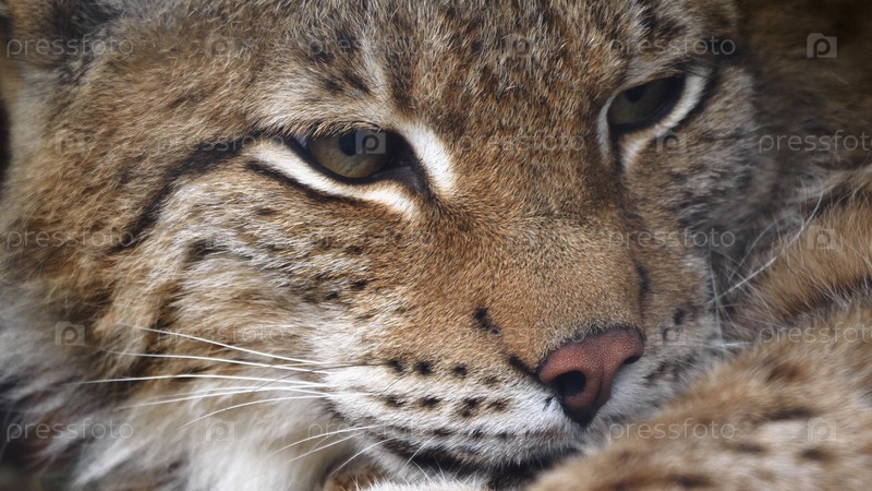 Рысь смотрит хищными глазами из укрытия