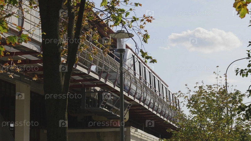 МОСКВА - 27 ИЮЛЯ: Московский транспортный трамвайный монорельс на ВДНХ 27 июля 2019 года в Москве, Россия