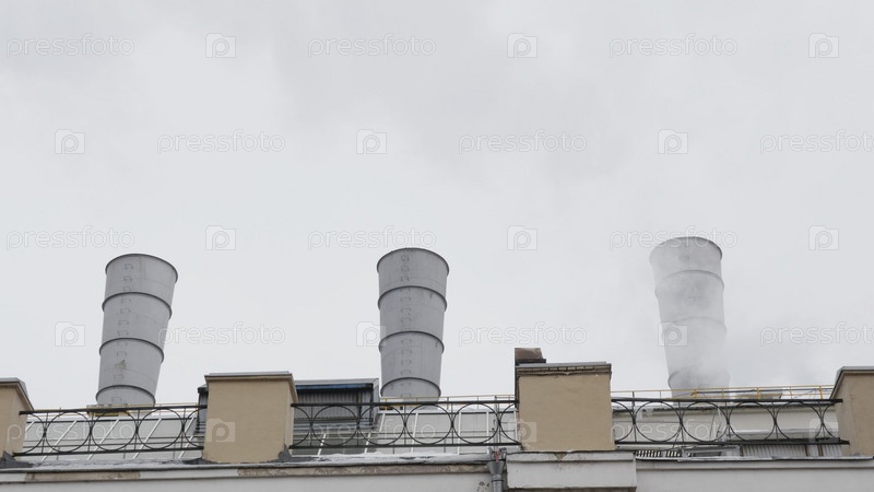 Трубы с дымом в здании завода