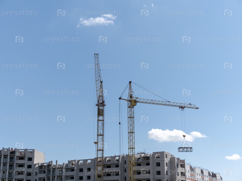 Строительная площадка с множеством кранов на фоне неба