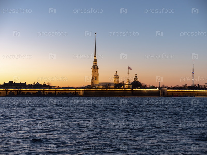 Ночная Петропавловская крепость — оригинальная цитадель Санкт-Петербурга, Россия
