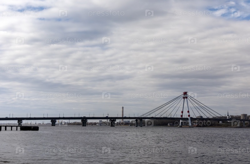 ЧЕРЕПОВЕЦ, РОССИЯ - 29 июня 2018 года: Вантовый мост через реку, Россия Череповец