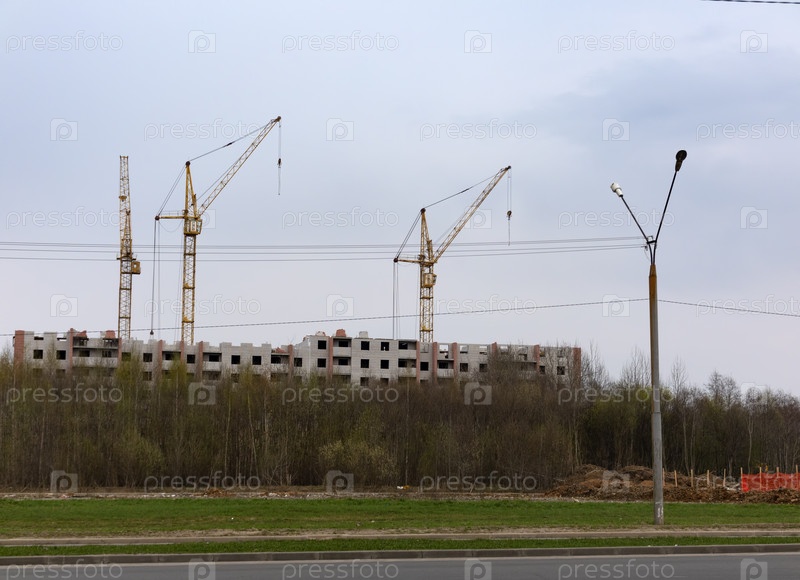 Строительная площадка с множеством кранов на фоне неба