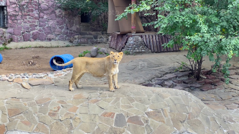 Портрет львицы, греющейся под теплым солнцем после ужина