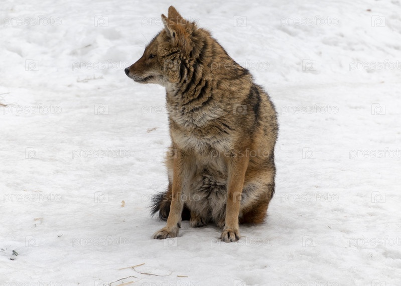 Золотой шакал в природе выслеживает добычу