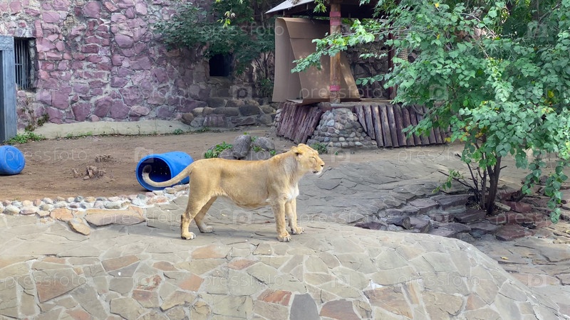 Портрет львицы, греющейся под теплым солнцем после ужина