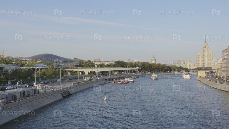 МОСКВА - 25 июня: Фрагмент плавучего моста в парке Зарядье в Москве на фоне неба 25 июня 2018 года в Москве, Россия