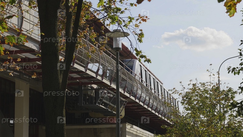 МОСКВА - 27 ИЮЛЯ: Московский транспортный трамвайный монорельс на ВДНХ 27 июля 2019 года в Москве, Россия