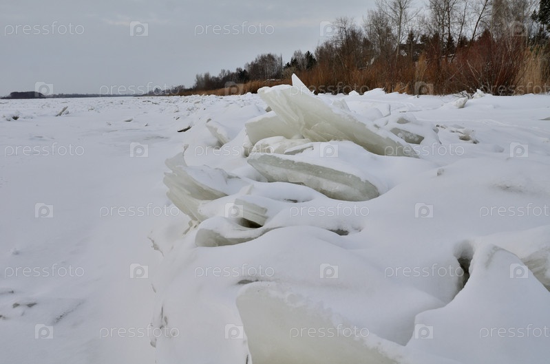 Вид на зимний берег реки Иртыш в Омской области