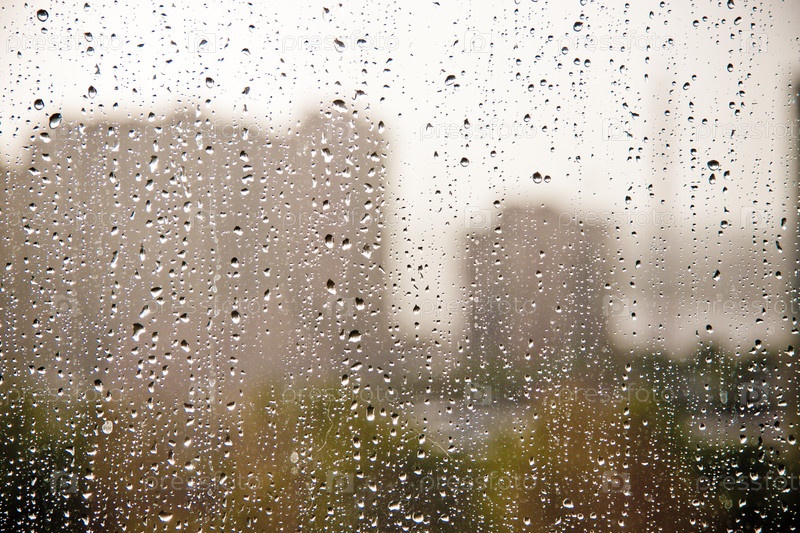 Панорама жилого комплекса в санкт-петербурге через стекло в каплях дождя