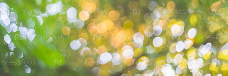Флора абстрактное изображение зеленых листьев, размытый фон с круглыми светлыми пятнами
