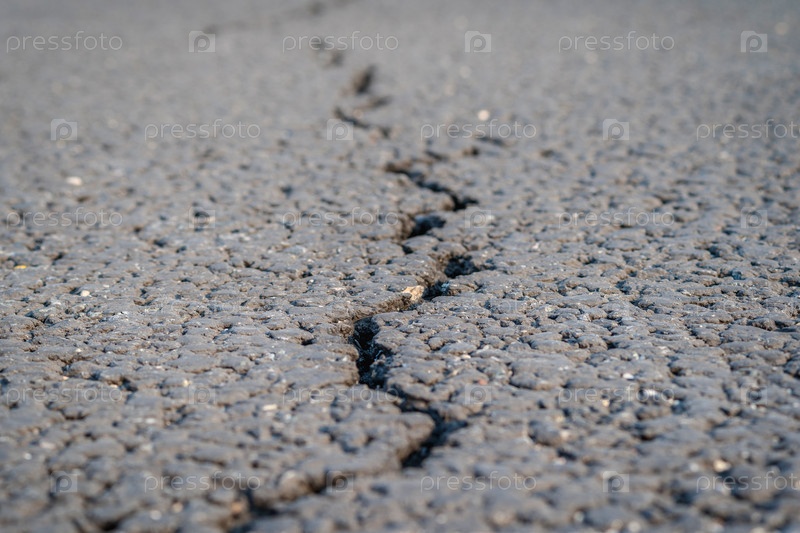 Ужасная трещина на дорожном покрытии, размытый фон крупным планом